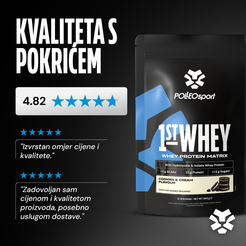 Razvijen uz pomoć vrhunskih sportaša i nutricionista, Polleo Sport 1st Whey predstavlja čisti standard kvalitete u svijetu proteina; izbor kojem vjeruju i profesionalci i rekreativci.