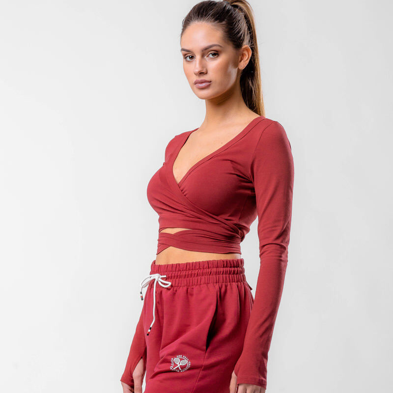 Osim zavodljivog dizanja s predivnim V-izrezom i trakicama koje ti omogućuju da top u potpunosti prilagodiš sebi i svojem stilu, Commit Wrap top privlačit će poglede svojom vatreno crvenom nijansom. Još jedan inovativan dodatak su otvori za prst na rukavima. Osim što odlično izgleda i naglašava predivnu ženstvenu figuru, ovaj top je iznimno ugodan za kožu zahvaljujući udobnom pamučnom materijalu od kojega je napravljen.