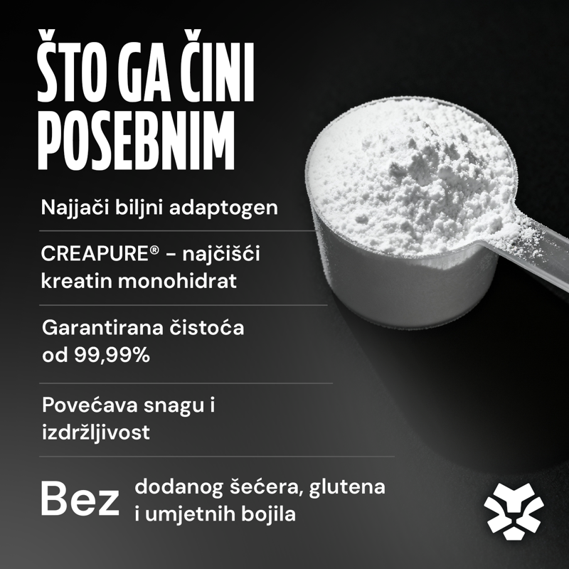 HR/BA Creapure - kreatin monohidrat, prah, dodatak prehrani Opis: Kreatin povećava tjelesne mogućnosti u uzastopnim kratkotrajnim vježbama velikog intenziteta. Koristan učinak postiže se dnevnim unosom 3 g kreatina. Proizvod je namijenjen odraslima koji provode tjelovježbu visokog intenziteta. Sastojci: Creapure® kreatin monohidrat. Alergeni: Može sadržavati tragove mlijeka, soje, jaja, celera, sulfita, ribe, rakova i orašastog voća. Upute za upotrebu: Uliti 200 ml vode ili omiljenog napitka u shaker, dodati 1 mjericu (3 g) praha, dobro protresti i konzumirati jednom dnevno 30 minuta prije ili neposredno nakon tjelovježbe visokog intenziteta. . Napomena: Dodatak prehrani nije nadomjestak ili zamjena uravnoteženoj prehrani. Čuvati od dohvata male djece. Upozorenja: Preporučene dnevne doze ne smiju se prekoračiti. Kreatin ne smiju koristiti trudnice, dojilje i osobe mlađe od 16 godina! Konzumiranje može dovesti do povećanja tjelesne mase, zbog nakupljanja vode u mišićima. Uvjeti čuvanja: Čuvati na hladnom i suhom mjestu, zaštićeno od izravne sunčeve svjetlosti, pri temperaturi do 25 °C. . Najbolje upotrijebiti do kraja / LOT broj: Otisnuto na ambalaži.