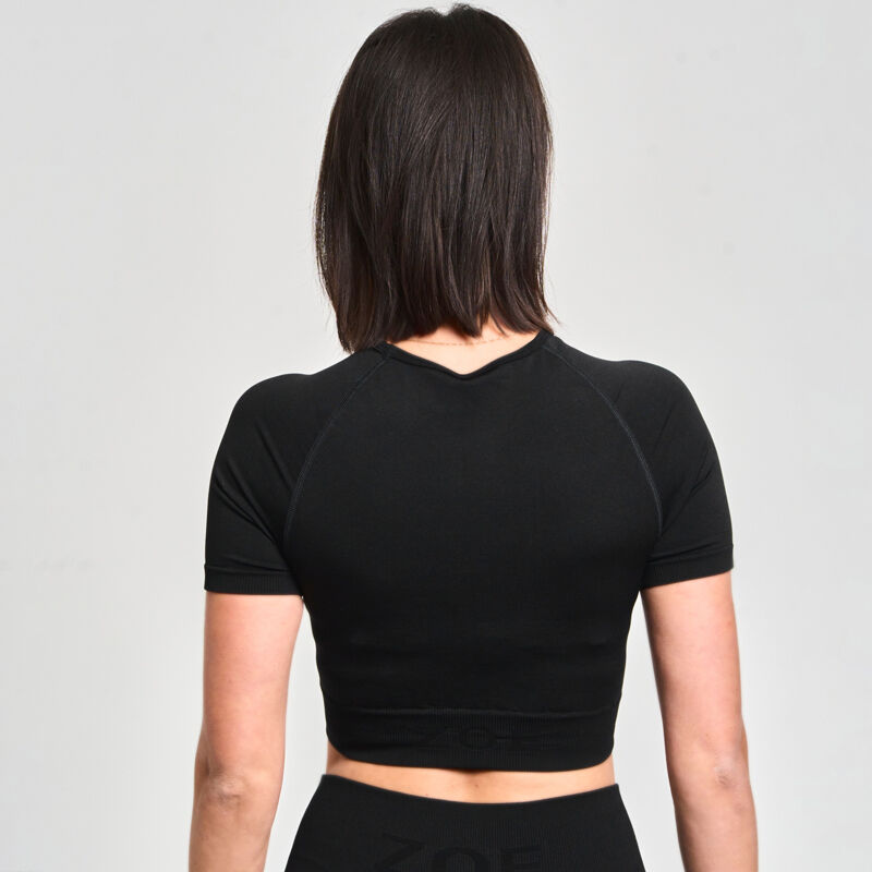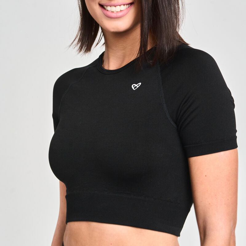 Uz najudobnije seamless tajice dolazi i odgovarajući gornji dio - Ella Seamless Crop Top. Uski kroj kratkih rukava nježno prati liniju tijela, a napravljen je od rastezljivog funkcionalnog materijala koji ostavlja savršeno ugodan osjećaj na koži. Istovremeno je materijal izuzetno prozračan, tako da ćeš bezbrižno uživati u svakom svojem treningu, bilo da se odlučiš za ples, jogu ili trening s utezima. Rebrasti detalji na rukavima i pojasnici podižu cjelokupan izgled.