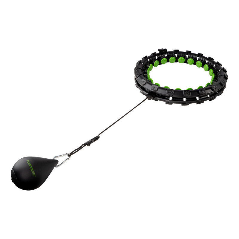 The parts easily connect to enable smooth rotation, and the hoop is made from durable and skin-friendly materials that won't irritate even during intense workouts. The weights are attached to an adjustable cord that you can customize for different intensity levels.