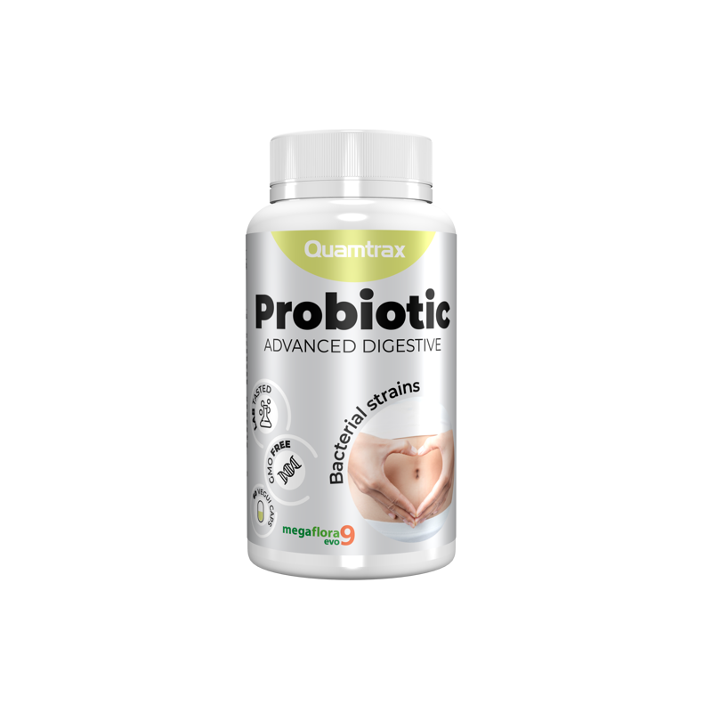 Quamtrax Probiotics contribute to the balance of intestinal flora, strengthen our system, and optimize the assimilation of nutrients. It contains the Megaflora 9 EVO complex and various microorganisms, offering support for the intestinal microbiota.