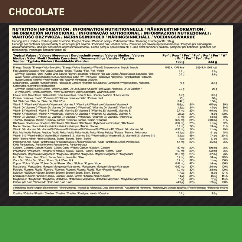 Let's repeat that. We've added 250g of fast carbohydrates, 25 vitamins and minerals, creatine, and glutamine, 50g of high-quality protein, and created a monster serving of 1250 calories. And all of that without sugar. Yes, we take bigger mass seriously.