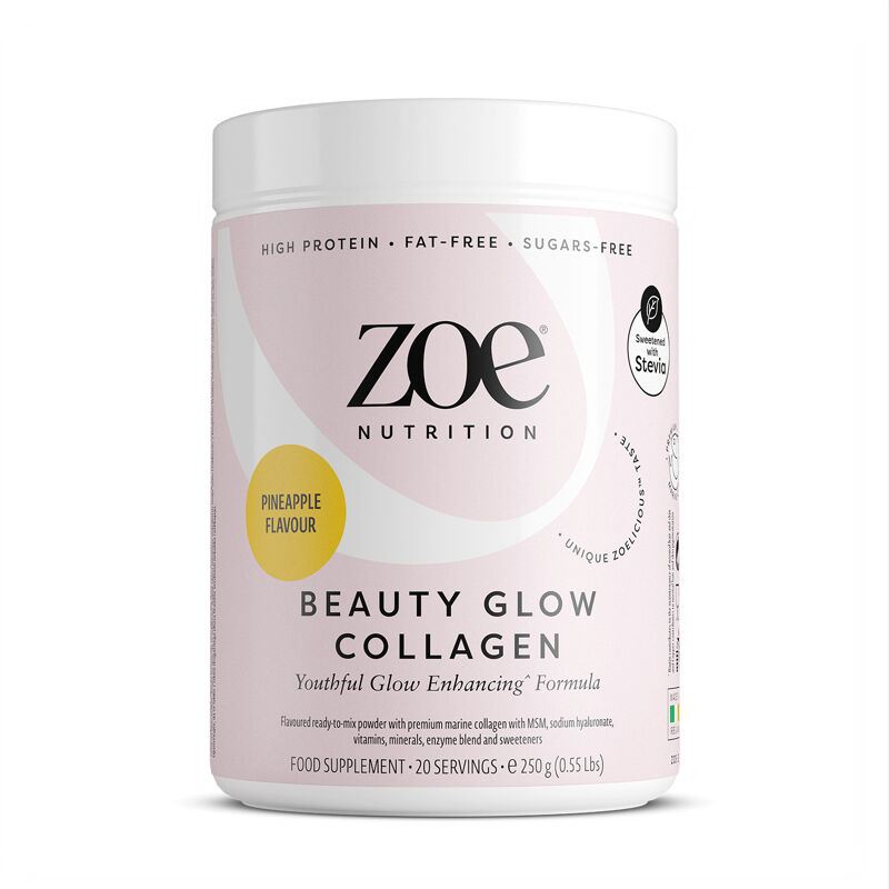 Indulge in the radiance of zoe Nutrition's Beauty Glow Collagen, a meticulously formulated powder. Crafted with precision, this blend combines premium marine collagen, MSM, sodium hyaluronate, essential vitamins, minerals, and a potent enzyme mixture to nourish your skin from within.