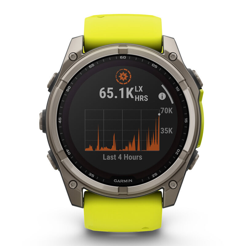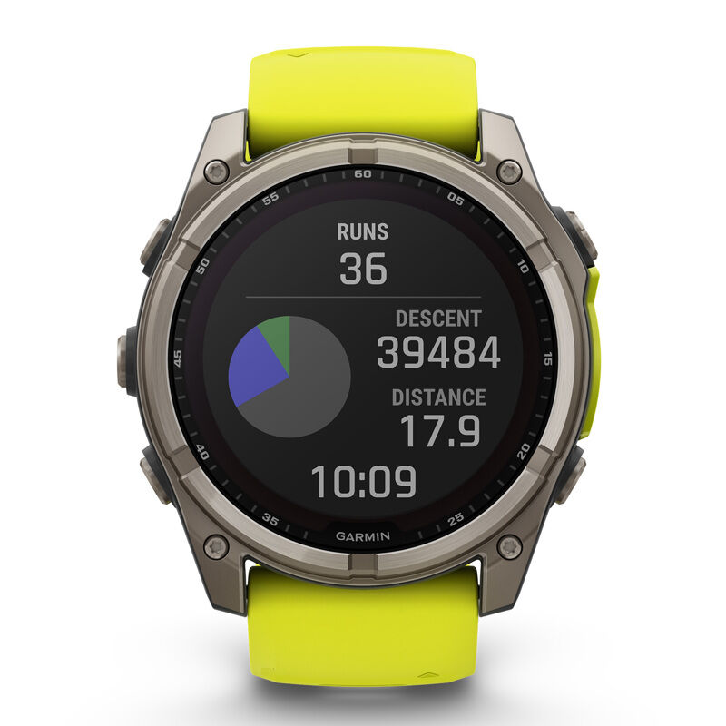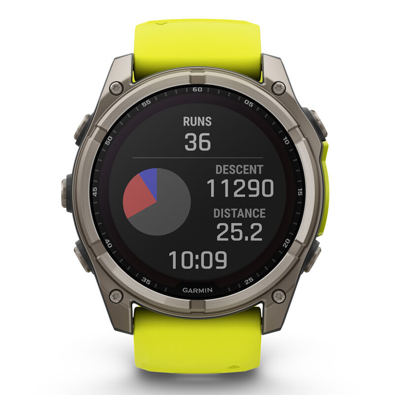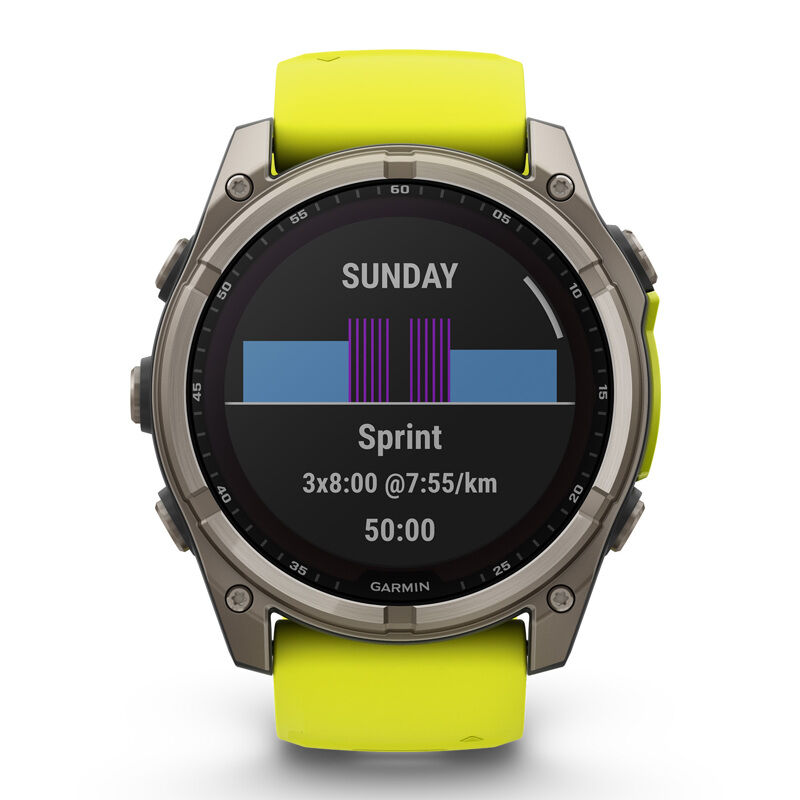 Namijenjen ozbiljnim sportašima i pustolovima koji žele pomicati svoje granice, ovaj vrhunski multisport GPS pametni sat stvoren je za odlične performanse i oblikovan za veća zapešća — s naprednim funkcijama za vježbanje snage, mogućnošću ronjenja, ugrađenim zvučnikom i mikrofonom za glasovne funkcije, ugrađenom LED svjetiljkom te trajanjem baterije od 48 dana s Power Sapphire™ staklom za solarno punjenje1.