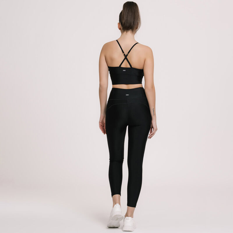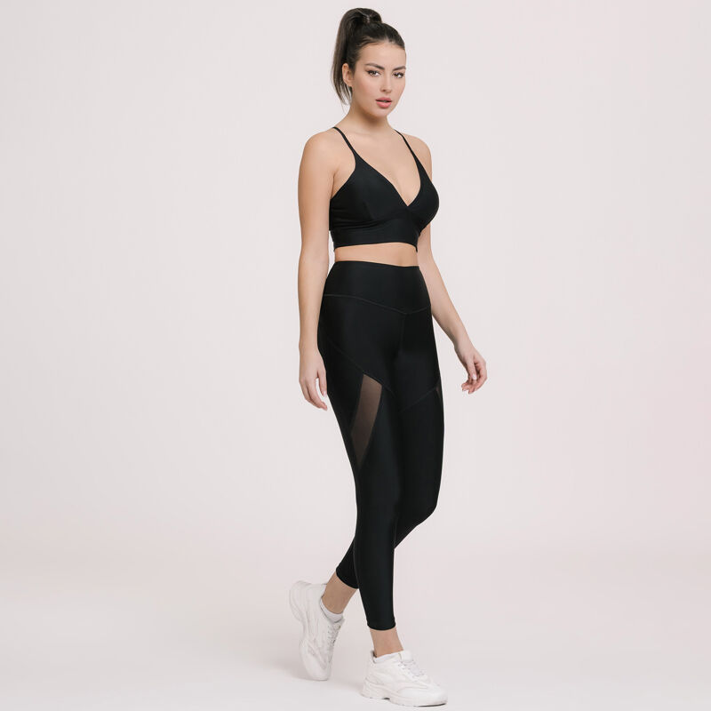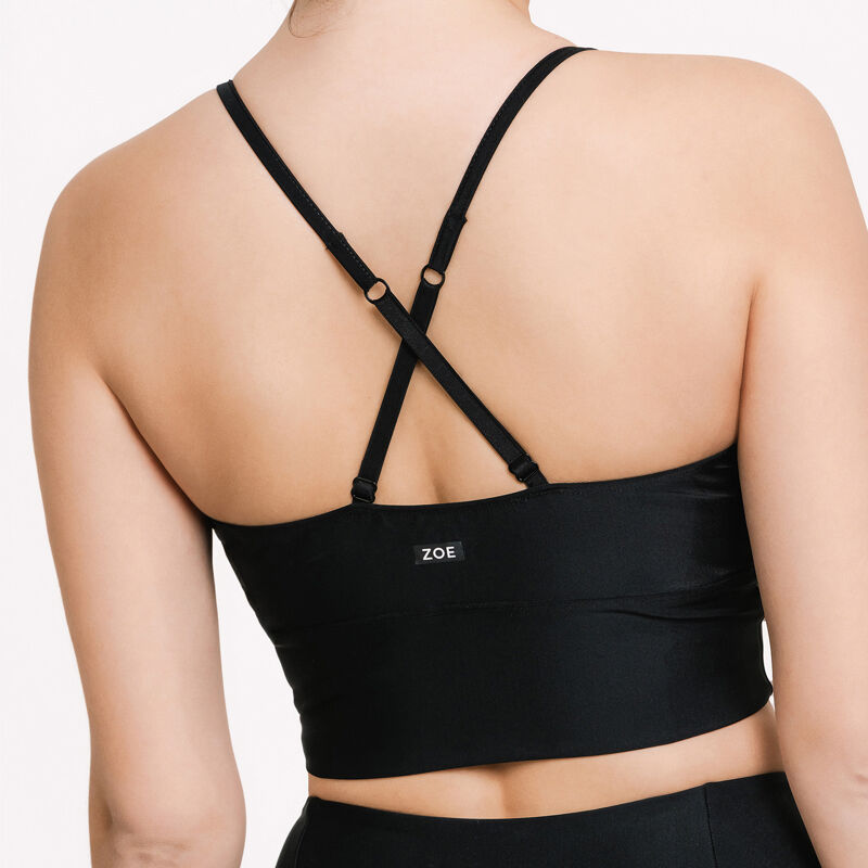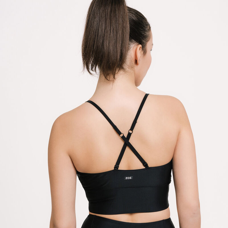 Istovremeno jednostavnog, ali laskavog kroja, Gloria sportski grudnjak pružit će ti savršenu potporu tijekom svih tvojih aktivnosti. Minimalistički dizajn s predivnim V-izrezom na prednjoj strani odiše jednostavnom elegancijom. Sve to dodatno podiže iznimno nježan i udoban, lagano svjetlucav crni materijal od kojeg je Gloria grudnjak napravljen.