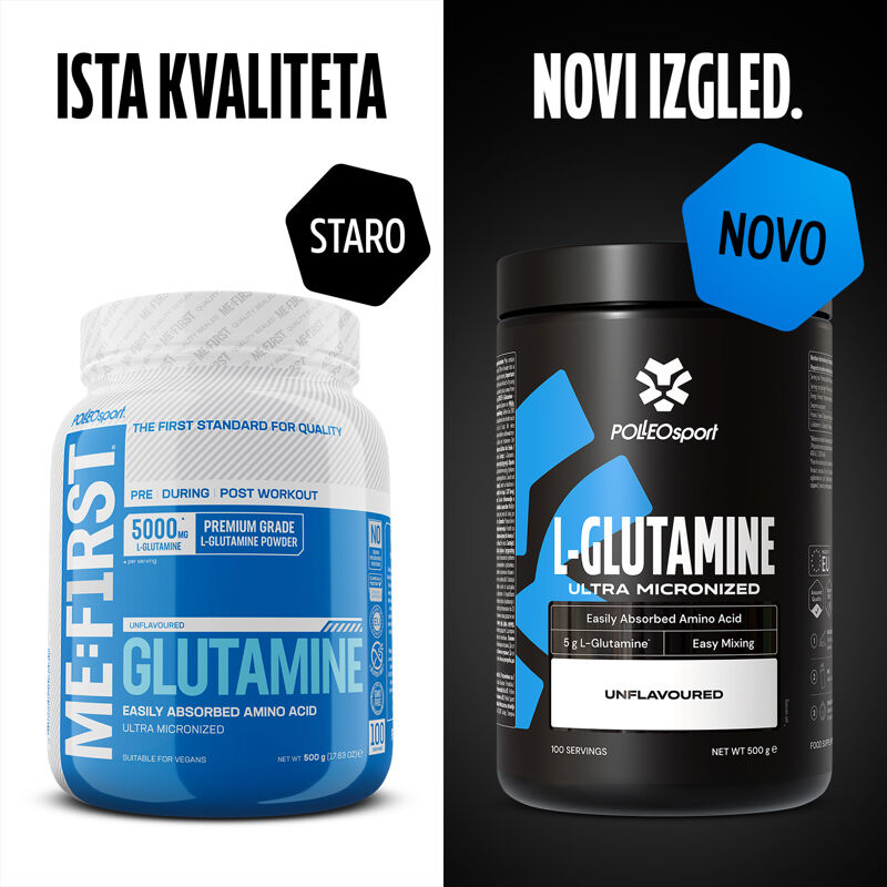 Na Me:First L-glutaminu su radili stručnjaci koji su proučavali tijela olimpijaca tijekom najzahtjevnijih treninga. Tako su napravili formulu 100 % čistog L-glutamina - glutamina bez dodanih drugih sastojaka, bez aditiva, konzervansa, emulgatora... Smatra se da je glutamin bitan faktor u borbi protiv fizičkog i psihičkog stresa, a s obzirom da je intenzivan trening i jedno i drugo, smatra se da je glutamin upravo ono što jednom kvalitetnom sportašu treba!