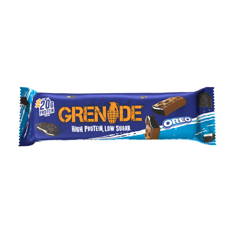 Predstavljamo Grenade OREO Protein Bar. Naoružajte se s više od 20 g proteina za izgradnju mišića, uz manje od 2 g šećera, dok vaše okusne pupoljke obasjava ikonski OREO okus.