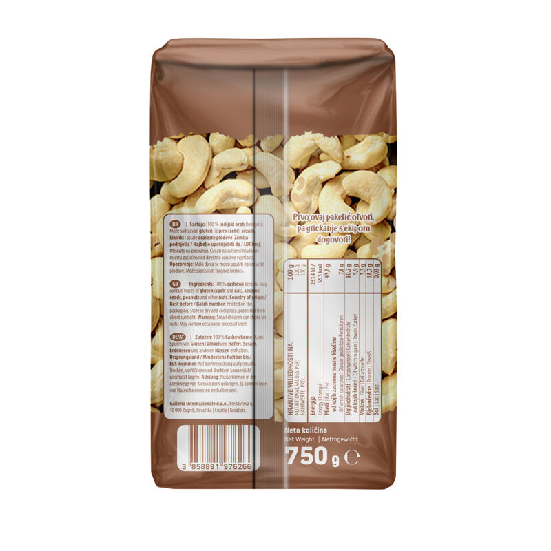 Slatkasto kremasta orašasta aroma te mekana tekstura čine neodoljive Nutrigold indijske oraščiće svima omiljenom zdravom grickalicom.