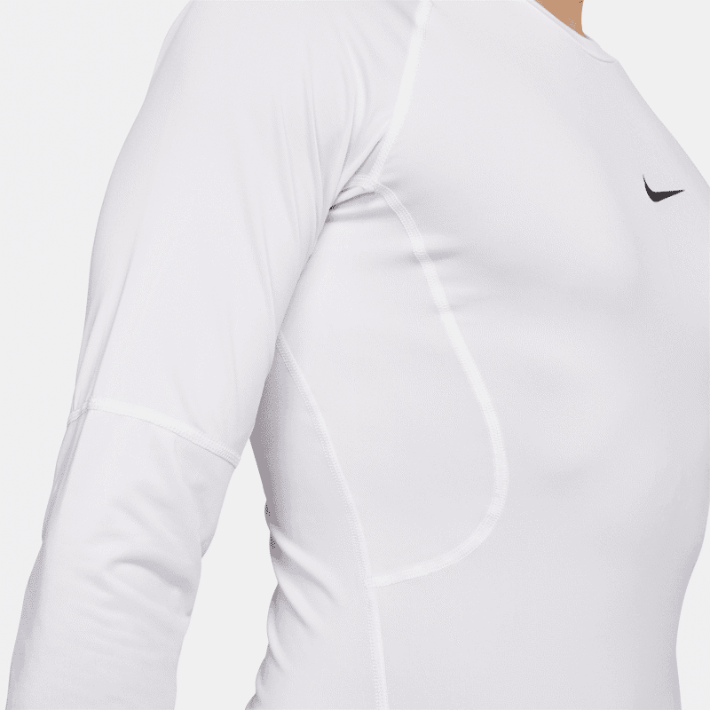 Kolekcija Nike Pro znači osjećaj samopouzdanja, bez obzira na to počinjete li redovito vježbanje ili završavate treninge visokog intenziteta. Ova pripijena majica dugih rukava nudi gladak i rastezljiv dizajn koji je savršen za sportove i aktivnosti koje volite. Osim toga, naši su dizajneri izradili zaobljeni porub iz dva razloga: dodatnu pokrivenost ili osjećaj sigurnosti kada je uvučete u donji dio.
