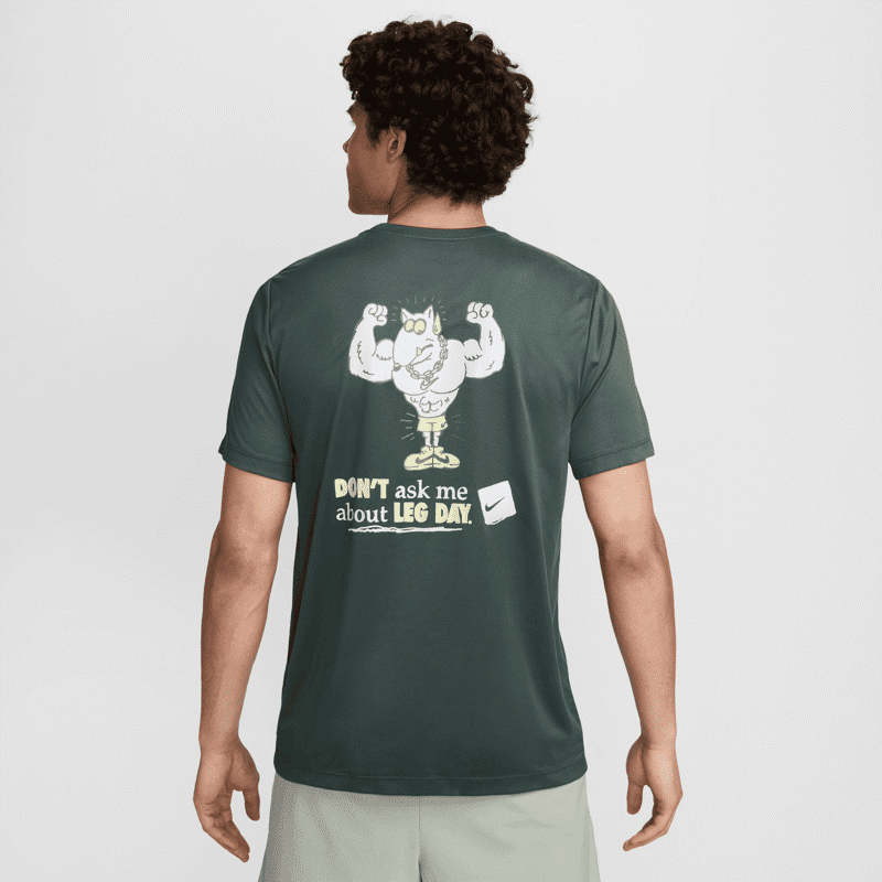 Dan za trening nogu nikad se ne preskače. Iako vam je poznat, taj vam moto neće olakšati vježbe koje uključuju čučnjeve, iskorake i dizanje. Podsjetite sebe i sve ostale na temeljni dio svakog treninga uz ovu majicu opuštenog kroja izrađenu od lagane tkanine koja odvodi znoj.