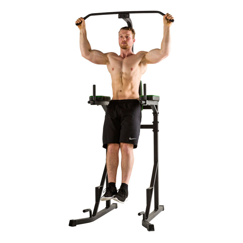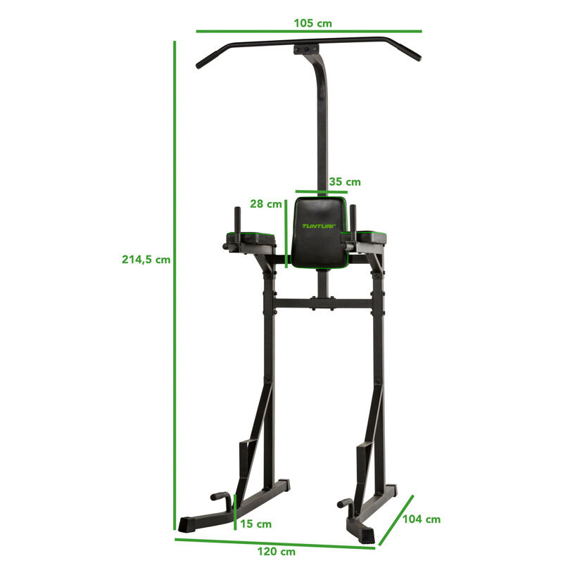 Sjajna stvar kod Tunturi Power Tower PT20 je ta što vam za intenzivno vježbanje nisu potrebni utezi ili komplicirana oprema. Jednostavno koristite težinu vlastitog tijela za treniranje. Stanica za snagu ima čvrstu šipku na vrhu za zgibove. Mijenjajte položaj ruku, od blizu jedne do razmaknute, kako biste vježbali sve skupine mišića gornjeg dijela tijela. Rukohvati i nasloni za ruke u sredini namijenjeni su za vježbe poput dipseva, podizanja nogu i podizanja koljena. Također možete koristiti dodatke za dipseve i zgibove. Dodaci poput remena ili elastike.