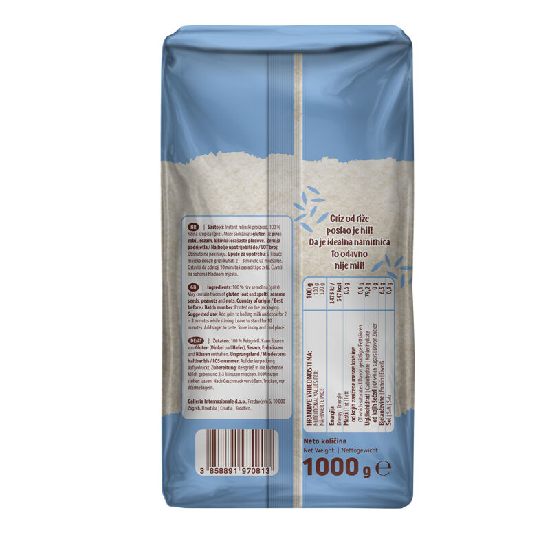 Nutrigold rižin griz dobiven je kuhanjem riže visoke kvalitete koja se suši te se potom cijelo zrno pažljivo melje u finu krupicu.