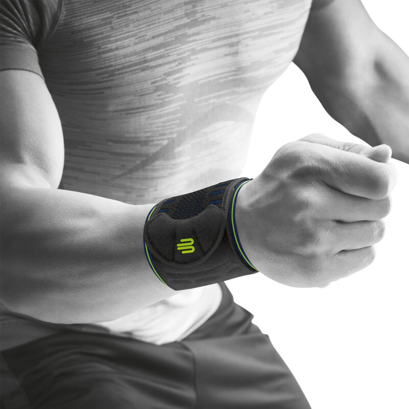 Sportska traka za zapešče pruža olakšanje zglobu tijekom intenzivnih vježbi koristeći individualno podesiv pritisak. Elastična petlja omogućuje sportašu podešavanje željenog pritiska sportske potpore na zglobu koristeći podesivu traku. Anatomski oblikovana sportska narukvica za zglob posebno je ravnog kroja i izrađena je od prozračnog i izdržljivog materijala.