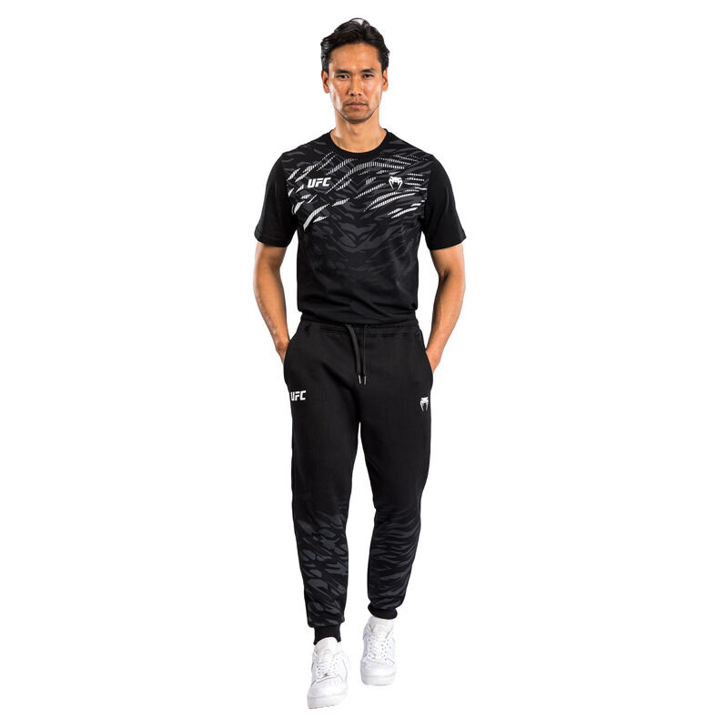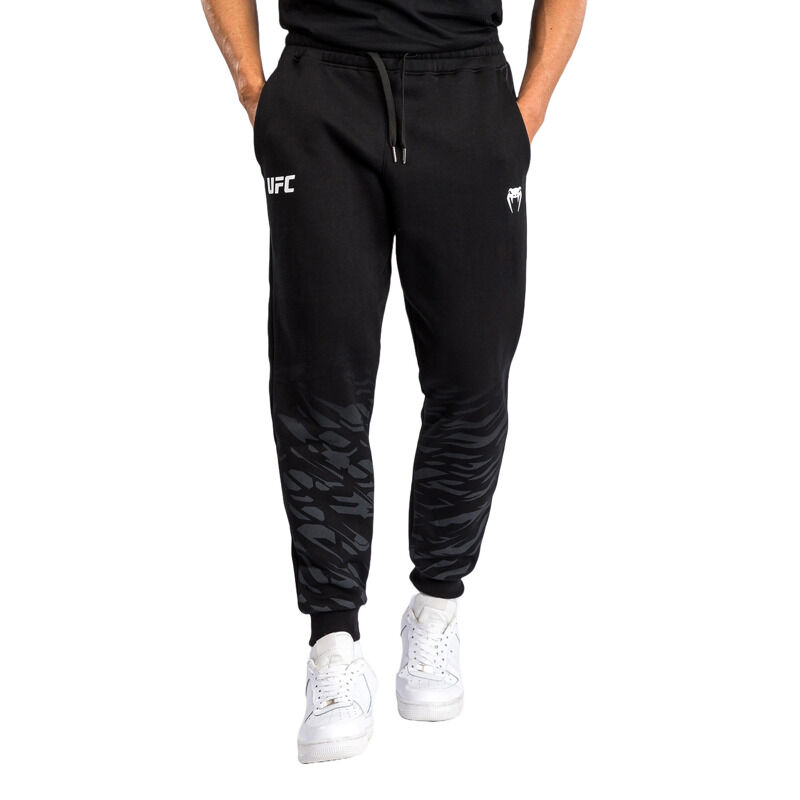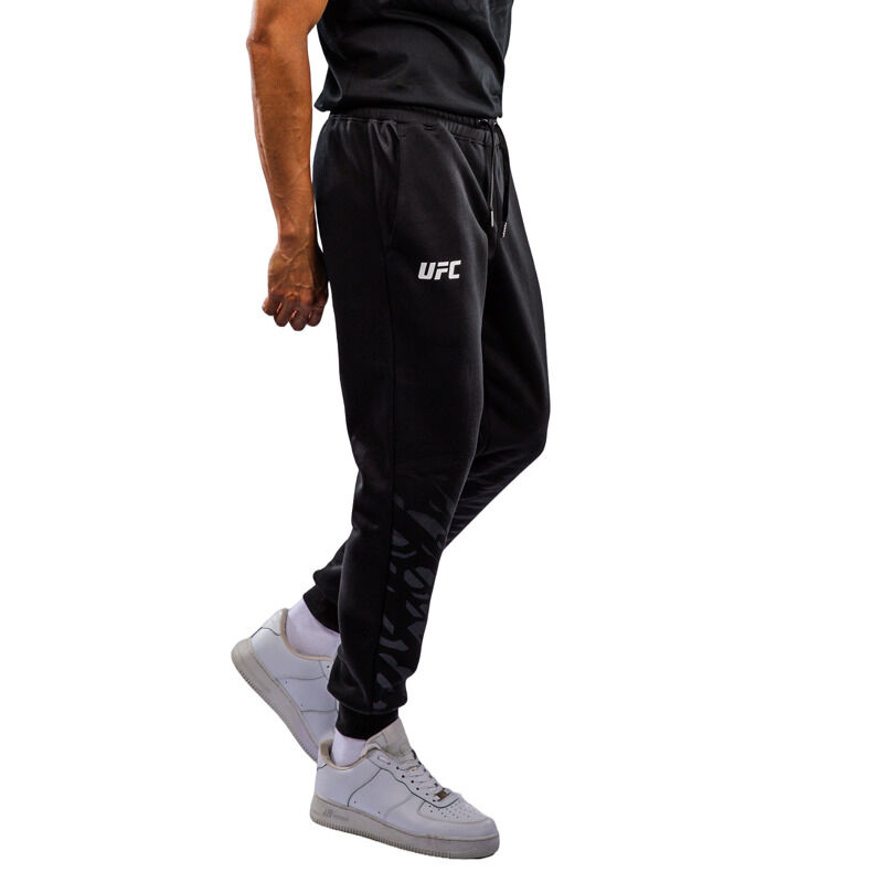 Inspirirana odjećom UFC boraca, UFC Fusion by Venum Replica kolekcija savršena je za navijače i borce. UFC Fusion by Venum muške replica hlače sadrže otvorene bočne džepove i pojas s vezicom za prilagodljivu udobnost. Ove hlače, inspirirane lifestyle dizajnom, nude maksimalnu slobodu kretanja za svaki pokret. Bijeli Venum i UFC logotipi na bokovima dodaju završni detalj ovim ležernim trenirkama. Ekskluzivna crno-zlatna kombinacija boja posvećena je UFC prvacima.