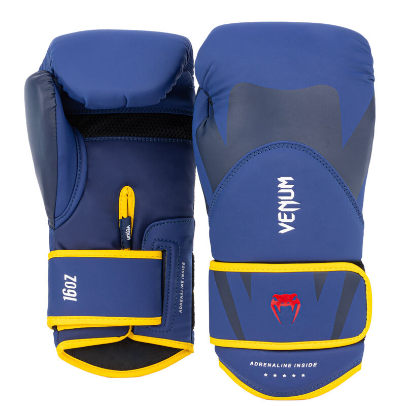 Postavljajući standarde, Venum Challenger 4.0 je najnovija evolucija u najprodavanijoj seriji Venum Challenger. Namijenjene boksu, kickboxingu i Muay Thai-u, Venum Challenger 4.0 bokserske rukavice idealne su za redovito vježbanje na vreći i tehnički rad. Trostruko slojevita pjena visoke gustoće i ojačani dlan pružaju čvrstu zaštitu za borce početničke do srednje razine. Izrađene od premium sintetičke kože, Challenger 4.0 bokserske rukavice pružaju izvrsnu trajnost. Dizajn rukavica igra s Venum logotipom zmije u plavoj, žutoj i crvenoj boji. Istovremeno, fraza "Adrenaline Inside" je postavljena na zapešće kao mantra za sportaše koji se pripremaju za izvedbu.