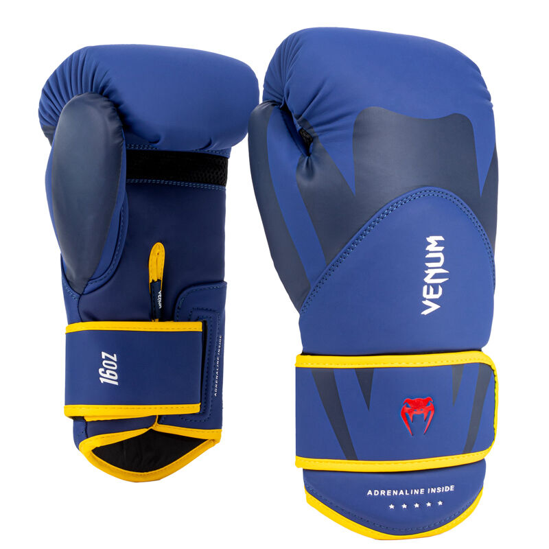 Postavljajući standarde, Venum Challenger 4.0 je najnovija evolucija u najprodavanijoj seriji Venum Challenger. Namijenjene boksu, kickboxingu i Muay Thai-u, Venum Challenger 4.0 bokserske rukavice idealne su za redovito vježbanje na vreći i tehnički rad. Trostruko slojevita pjena visoke gustoće i ojačani dlan pružaju čvrstu zaštitu za borce početničke do srednje razine. Izrađene od premium sintetičke kože, Challenger 4.0 bokserske rukavice pružaju izvrsnu trajnost. Dizajn rukavica igra s Venum logotipom zmije u plavoj, žutoj i crvenoj boji. Istovremeno, fraza "Adrenaline Inside" je postavljena na zapešće kao mantra za sportaše koji se pripremaju za izvedbu.