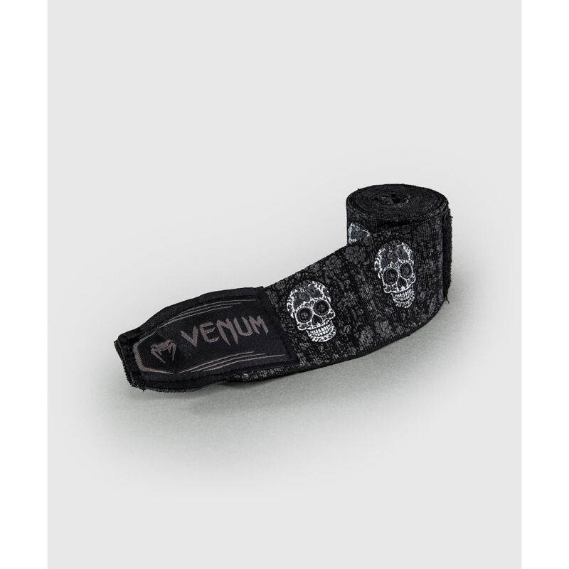 Venum Santa Muerte bandaže za ruke zabavnog su blagdanskog dizajna i namijenjene su za boks, kickboks, Muay Thai i MMA trening. Mješavina pamuka i elastina te sigurno čičak zatvaranje pružaju potporu i stabilizaciju šake i zapešća unutar boksačkih rukavica, omogućujući intenzivan trening uz smanjen rizik od ozljede. Izdržljive, jake i prozračne, ove bandaže prikladne su za trening i natjecanje u borilačkim sportovima.