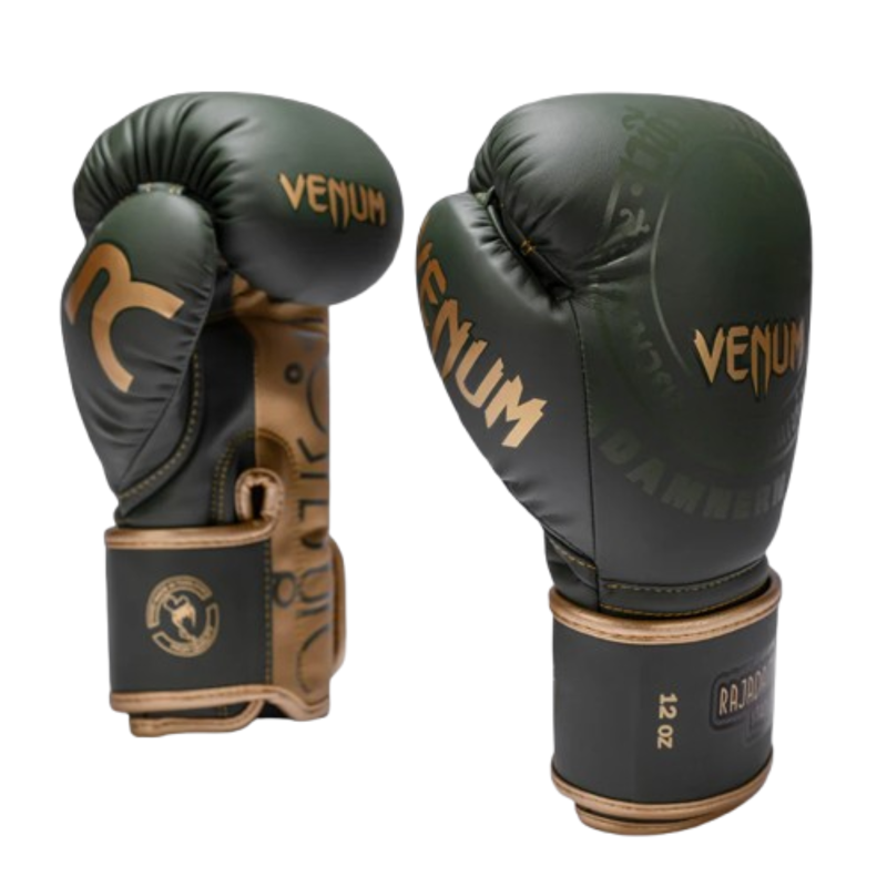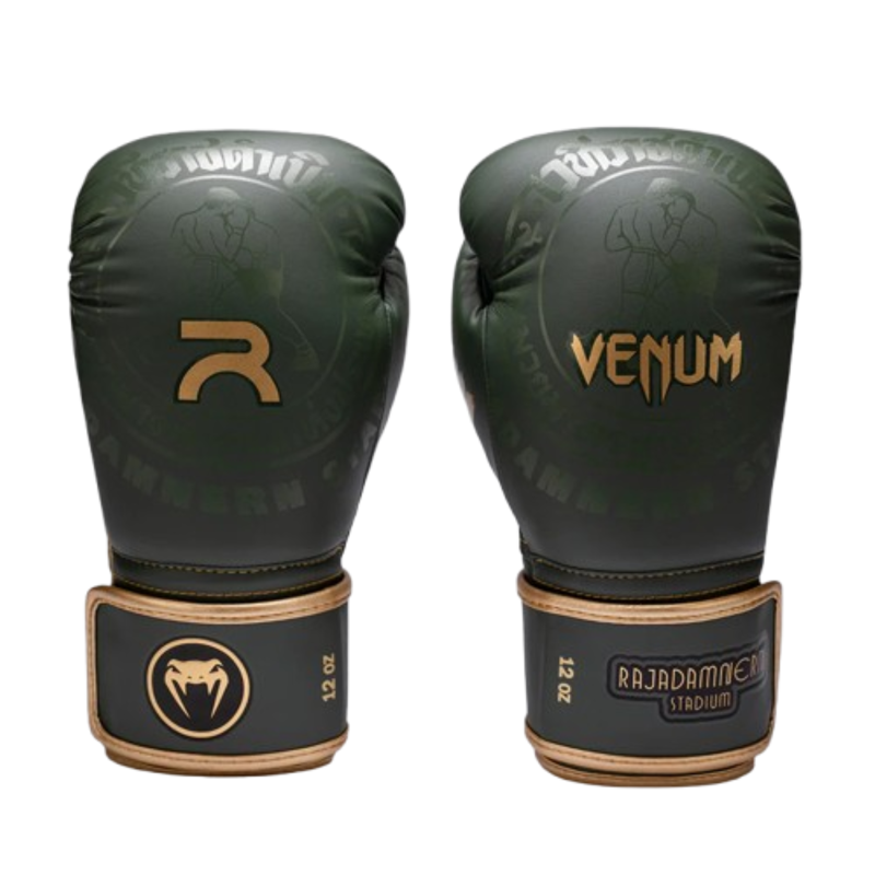 Venum x Rajadamnern boksačke rukavice identičan su model koji koriste borci tijekom Raja World Series turnira. Konstruirane tako da drže šaku i zapešće u prirodnom položaju udarca, pružaju vrhunsko autentično iskustvo borbe. Troslojna pjena apsorbira udarce, dok perforacije na dlanu i palcu poboljšavaju ventilaciju ovih premium polukožnih rukavica. Produženi dio za zapešće i široki čičak zatvarač osiguravaju stabilnost i precizno prianjanje. Ručno izrađene u Tajlandu, pogodne su za boks, kickboks i Muay Thai – za sve razine.