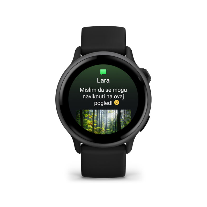 Primajte e-poštu, poruke i upozorenja na svoj sat dok je uparen s iPhone ili Android pametnim telefonom. Ako imate telefon sa sustavom Android, na poruke možete odgovarati preko tipkovnice na satu, a fotografije koje primate možete gledati izravno na zaslonu sata.